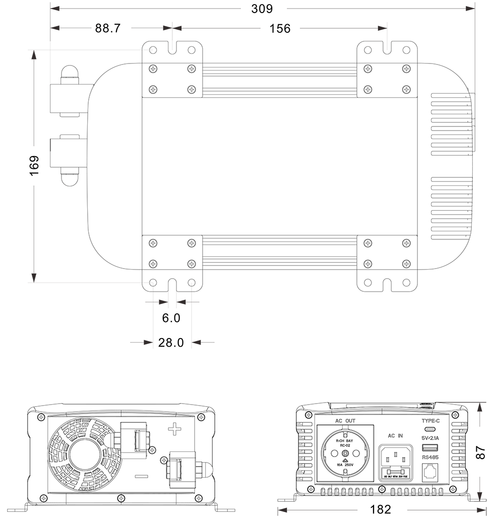 0 ~ + 60 ℃ Polaritas mbalikke (sekring) / ing voltase / liwat perlindungan voltase / AC liwat saiki (breaker)