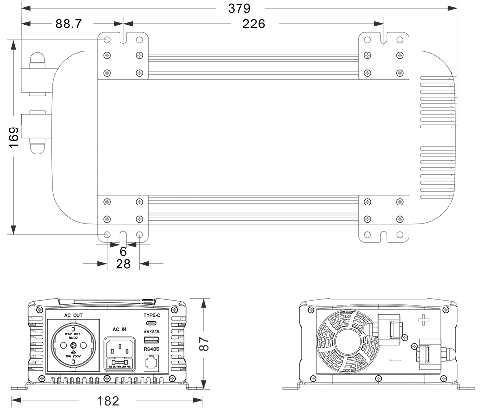 Liyane Dimensi (w × h × d) 379 × 182 × 87mm