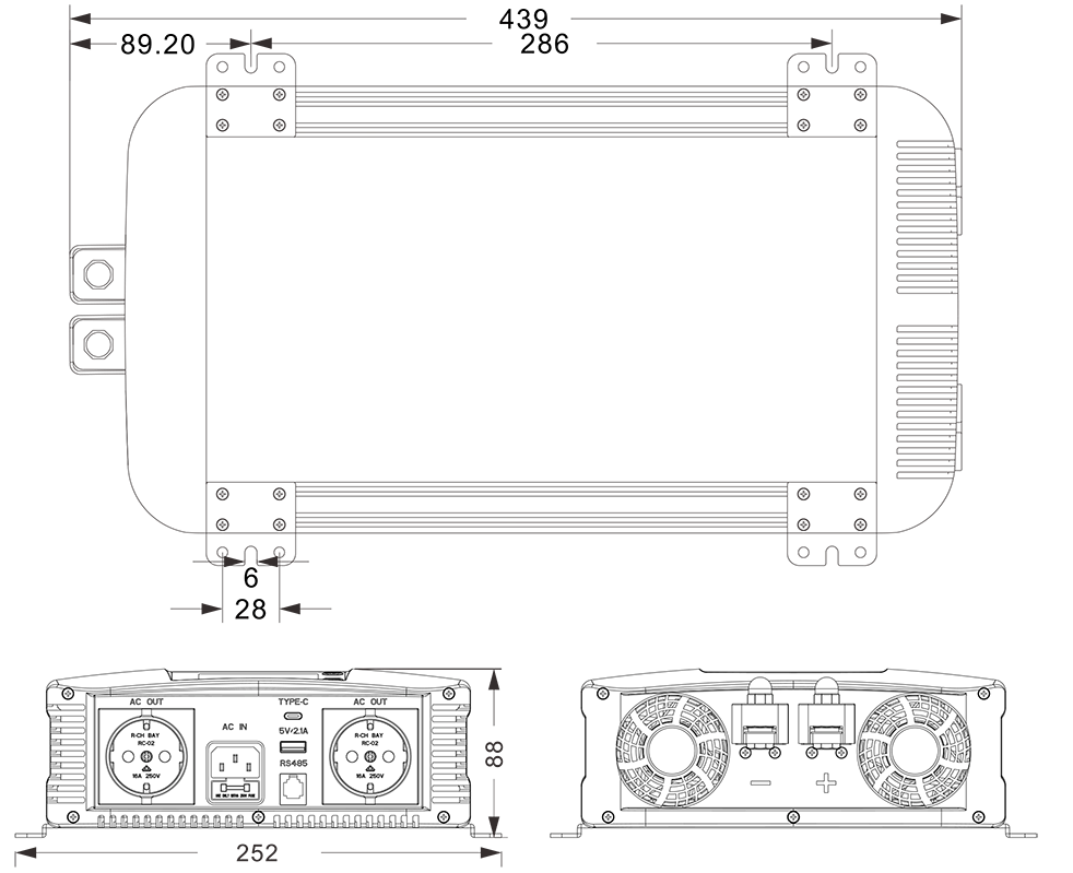 Gambar mekanik: (439x252 * 88mm)