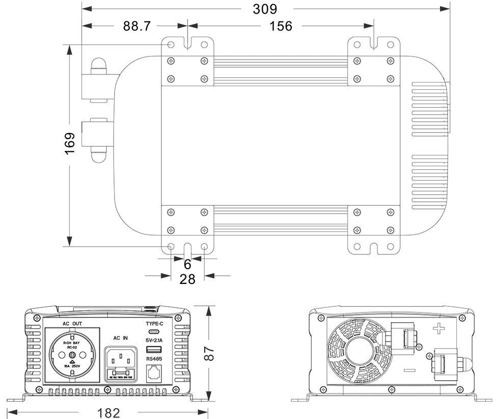 Gambar mekanik: (309x182x87mm)