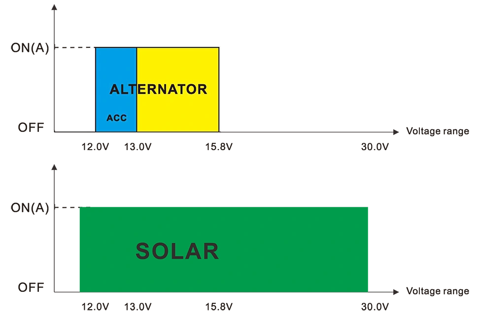 ● Input AC UNIVERSAL 12.0v-30.0V 士 0.2V kanggo solar / 12.0v-15.bvh0.2v kanggo mobil